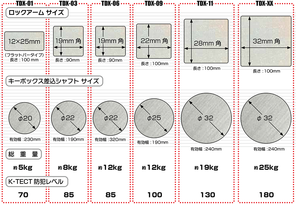 | K・TECT防犯レベル | 70 | 85 | 100 | 130 | 180 | |