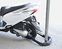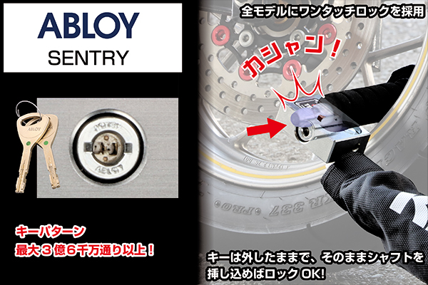 二輪用ロック専用設計により施錠時はキー不要。シャフトにキーシリンダーブロックを差し込むだけのワンタッチロックで、利便性を大幅に高めています。