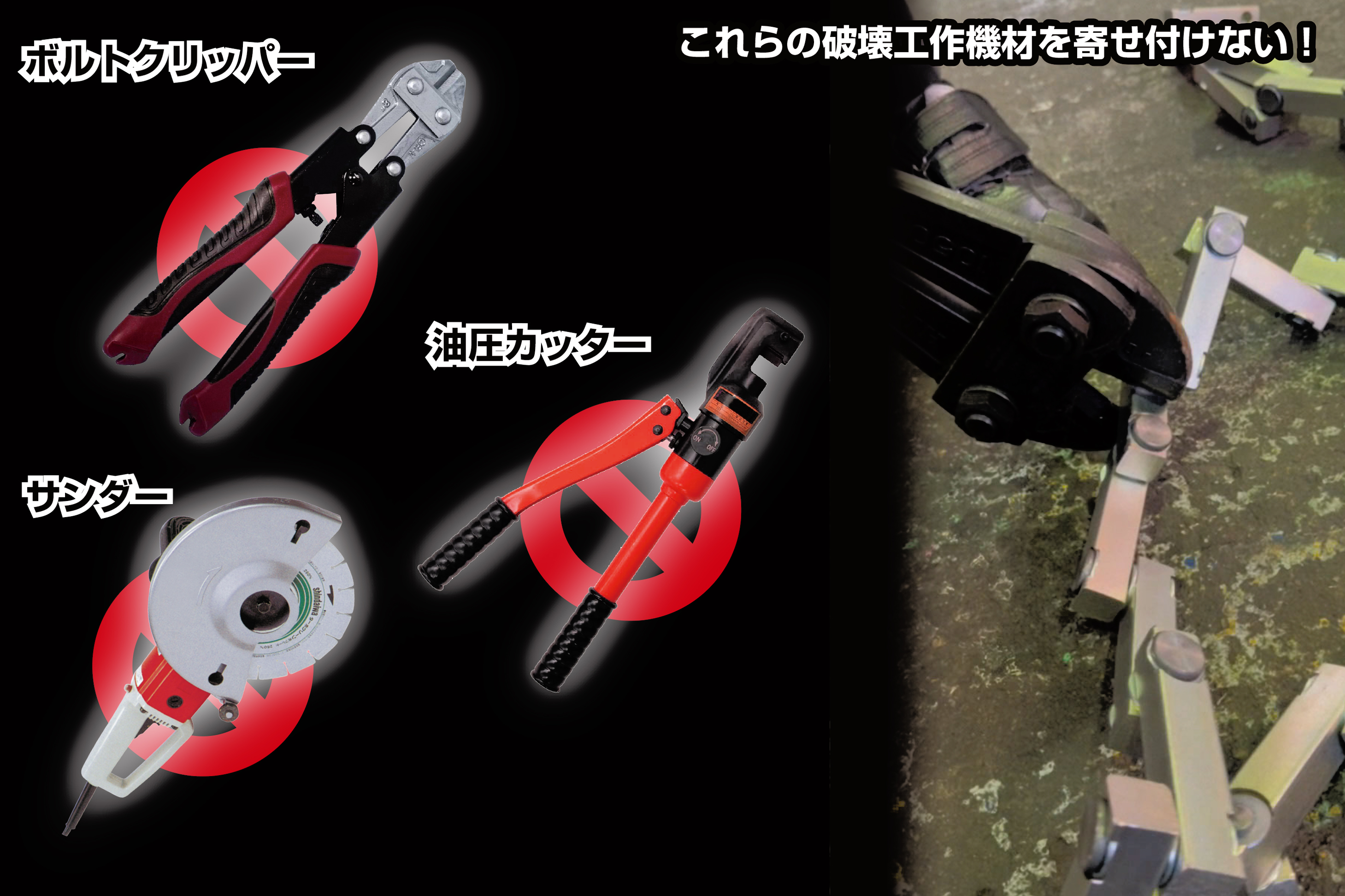 特殊合金鋼は窃盗犯がよく使用するボルトクリッパーや油圧カッターを寄せ付けません。
