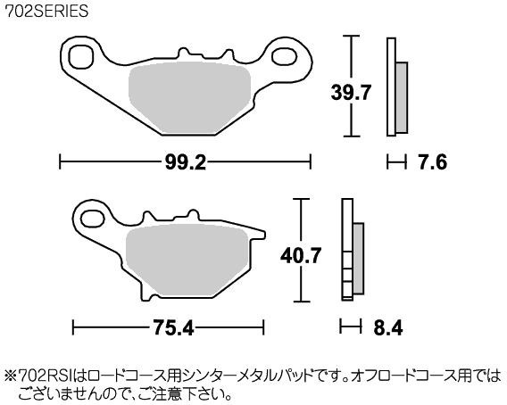 D:ディスク数 (S:シングルディスク W:ダブルディスク R:右側キャリパー L:左側キャリパー P:パーキングブレーキ)標準:SBS社標準のパッドです。